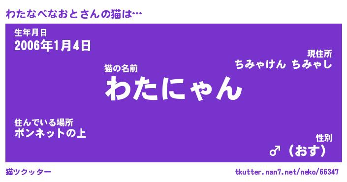 | ファンタジー風あだ名 | 『ワタフェル』『ファントムワタス』 |