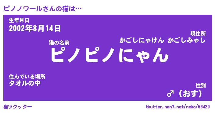 | ファンタジー風あだ名 | 『ピノフェル』『ファントムピノス』 |