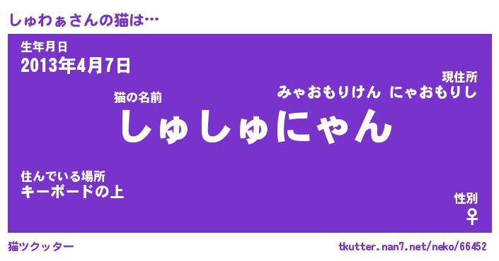 | 2回繰り返すあだ名 | 『しゅしゅ』『ししゅゅ』『ねばねば』 |