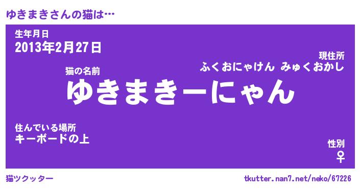 | ファンタジー風あだ名 | 『ユキフェル』『エターナルユキマキー』 |