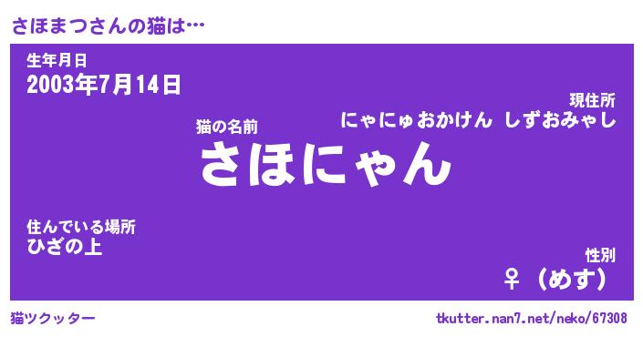 | ポケモン風あだ名 | 『サホチュウ』『サホマダネ』 |