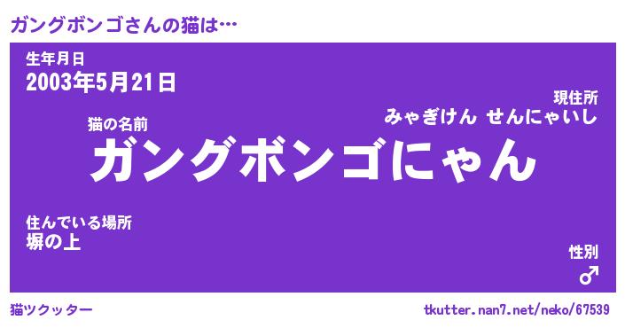 | 男性向けラノベタイトル風あだ名 | 『ガングボンゴの憂鬱』 |