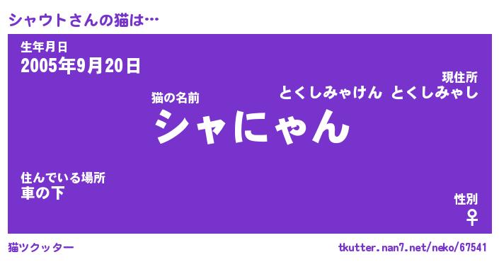 | ヘコむあだ名 | 『シャにゅー』『豆乳』『シャっ子』 |
