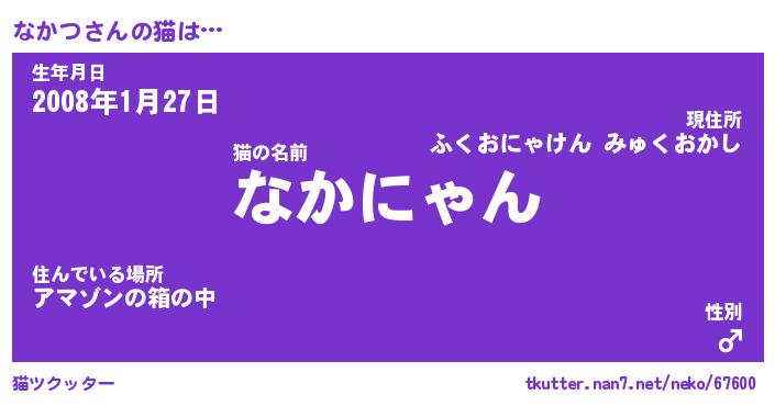 | 男性向けラノベタイトル風あだ名 | 『なかつの憂鬱』 |