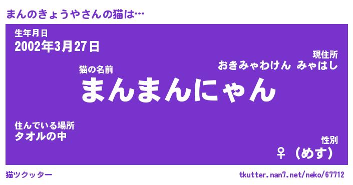 | ポケモン風あだ名 | 『マンチュウ』『マンノダネ』 |