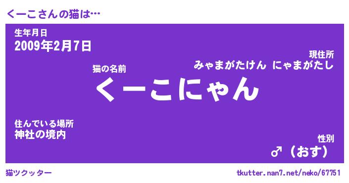 | ポケモン風あだ名 | 『クーチュウ』『クーコダネ』 |
