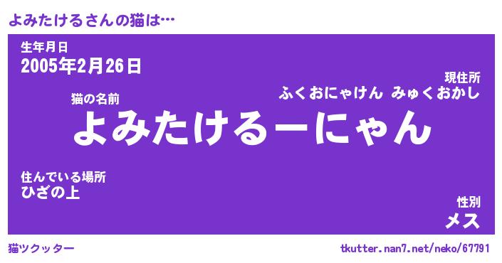 | ファンタジー風あだ名 | 『ヨミフェル』『エターナルヨミタケルー』 |