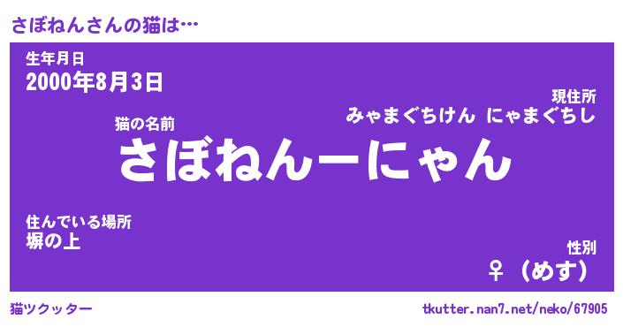 | 生年月日? …「くろねこ」 | 8月01日 10:16 |