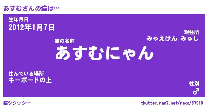 | 肩書あだ名 | 『あすむ店長』『あすむ総理大臣』 |
