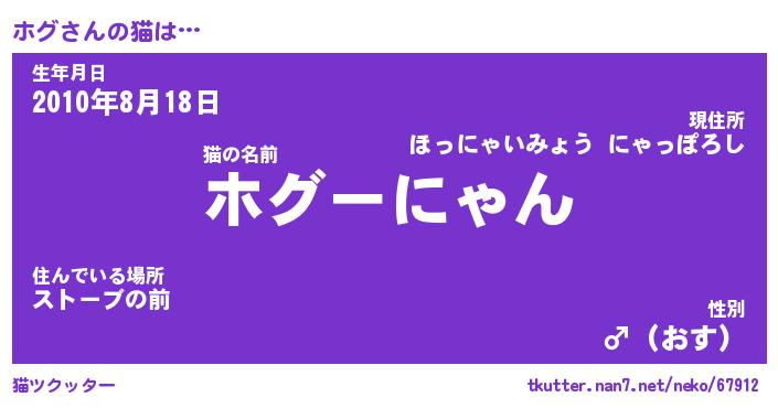 | ポケモン風あだ名 | 『ホグチュウ』『ホグダネ』『ヒホグ』 |