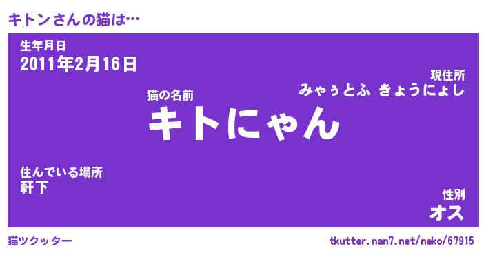 | ポケモン風あだ名 | 『キトチュウ』『キトンダネ』 |