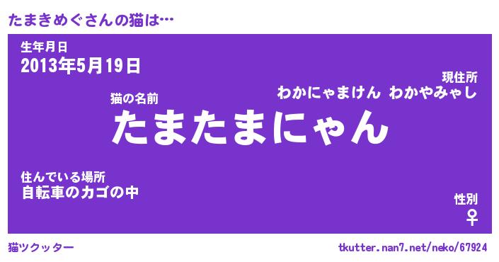 | ファンタジー風あだ名 | 『タマフェル』『エターナルタマキメグー』 |