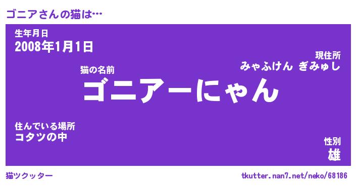 | ポケモン風あだ名 | 『ゴニチュウ』『ゴニアダネ』 |