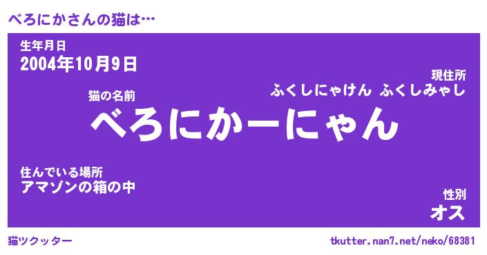 | 生年月日? …「くろねこ」 | 8月01日 10:16 |