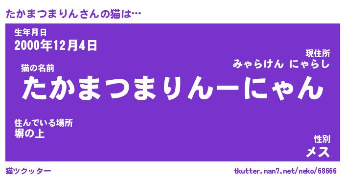 | 男性向けラノベタイトル風あだ名 | 『タカマツマリンアートオンライン』 |