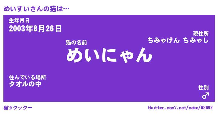 | ヘコむあだ名 | 『めいにゅー』『牛乳』『めいっちょ』 |