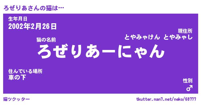 | 意味不明あだ名 | 『ペロリンろぜりあ』『永久保存ろぜりあ』 |