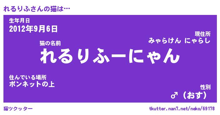 | 意味不明あだ名 | 『ペロリンれるりふ』『永久保存れるりふ』 |