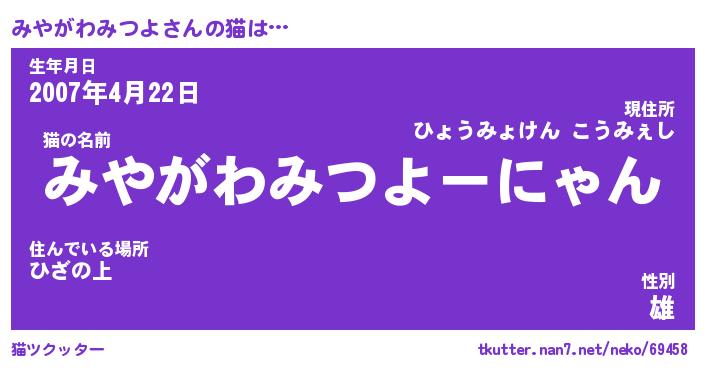 | 肩書あだ名 | 『みやがわみつよ御曹司』 |