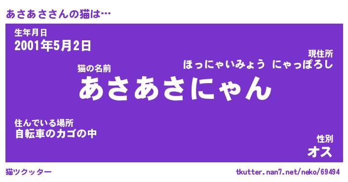 | 意味不明あだ名 | 『ペロリンあさあさ』『永久保存あさあさ』 |