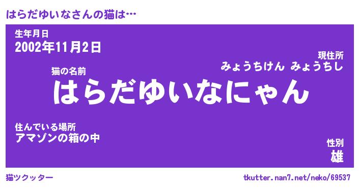 | 意味不明あだ名 | 『ペロリンはらだゆいな』 |
