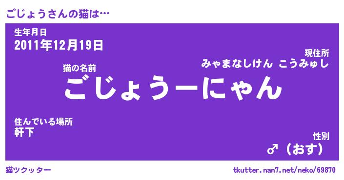 | 意味不明あだ名 | 『ペロリンごじょう』『永久保存ごじょう』 |