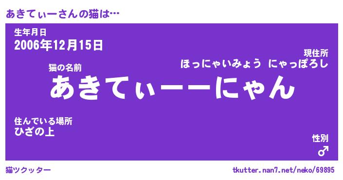 | ツイッター | あきてぃーさんのツイッターID『fukuyoka_nyan』 |