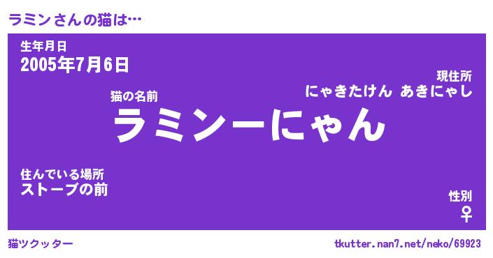 | 意味不明あだ名 | 『ペロリンラミン』『ラミンフォーエバー』 |