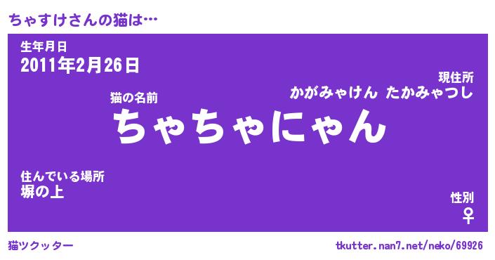 | 意味不明あだ名 | 『ペロリンちゃすけ』『永久保存ちゃすけ』 |