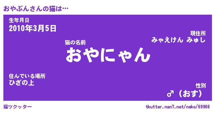 | ファンタジー風あだ名 | 『オヤフェル』『エターナルオヤブンー』 |