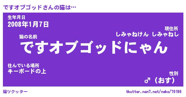 | 男性向けラノベタイトル風あだ名 | 『ですオブゴッドの憂鬱』 |