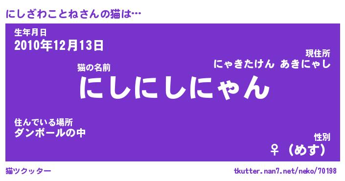 | ポケモン風あだ名 | 『ニシチュウ』『ニシザダネ』 |