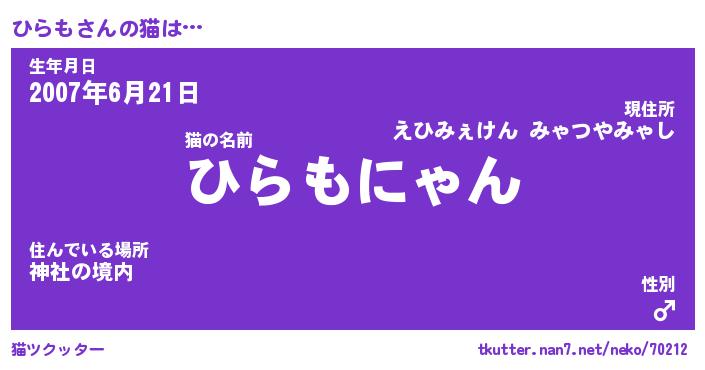 | 生年月日? …「くろねこ」 | 8月01日 10:16 |