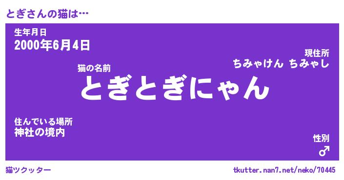 | 意味不明あだ名 | 『ペロリンとぎ』『とぎフォーエバー』 |