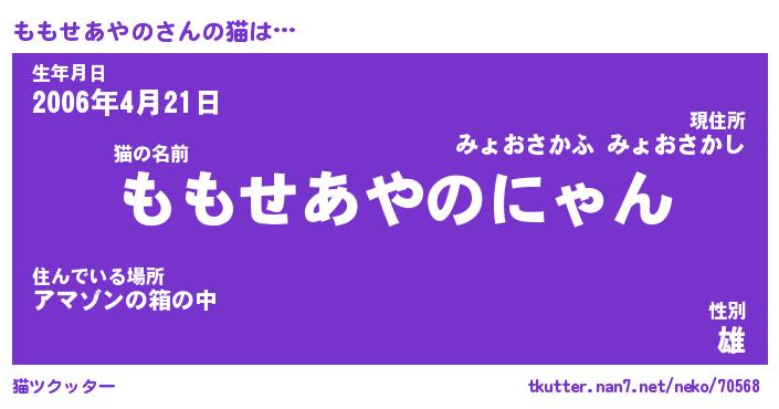 | 女子向けラノベタイトル風あだ名 | 『(仮)ももせあやののやんごとなき事情』 |