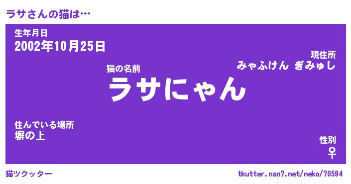 | ヘコむあだ名 | 『ラサにー』『牛乳』『ラサぷりん』 |