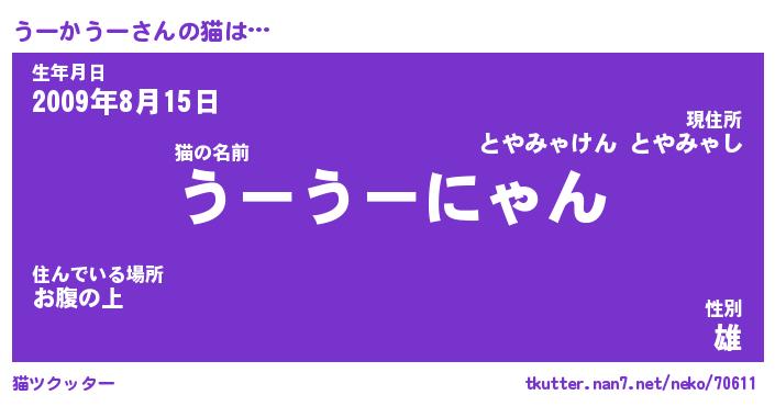 | ポケモン風あだ名 | 『ウーチュウ』『ウーカダネ』 |