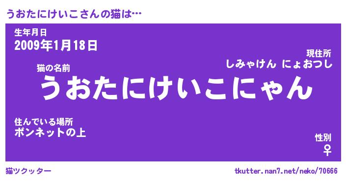 | 女子向けラノベタイトル風あだ名 | 『(仮)うおたにけいこのやんごとなき事情』 |