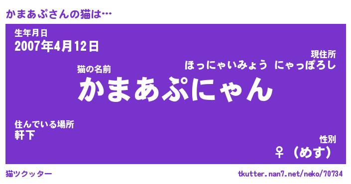 | 意味不明あだ名 | 『ペロリンかまあぷ』『永久保存かまあぷ』 |