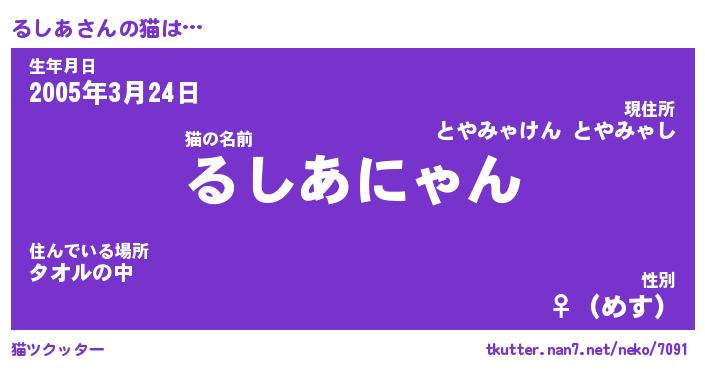 | 意味不明あだ名 | 『ペロリンるしあ』『るしあフォーエバー』 |