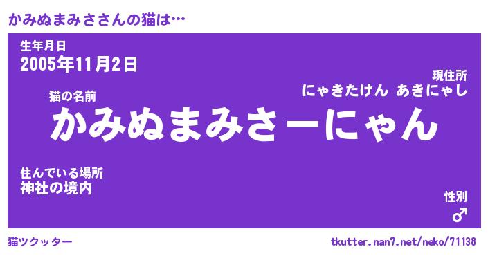 | 肩書あだ名 | 『かみぬまみさCEO』『かみぬまみさ班長』 |