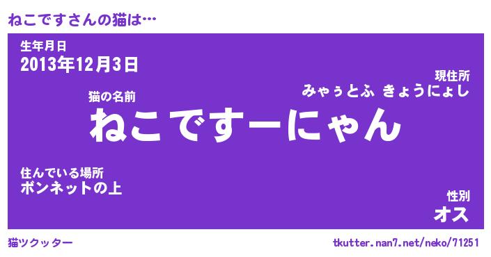 | 意味不明あだ名 | 『ペロリンねこです』『永久保存ねこです』 |