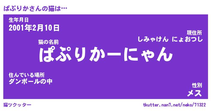 | 意味不明あだ名 | 『ペロリンぱぷりか』『永久保存ぱぷりか』 |