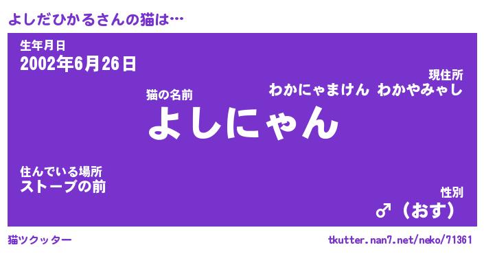 | ポケモン風あだ名 | 『ヨシチュウ』『ヨシダダネ』 |