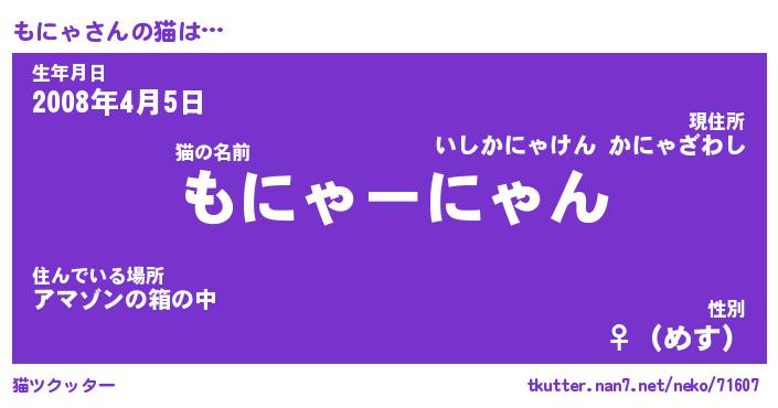 | ヒーロー風カッコイイあだ名 | 『スーパーモニャ』『ウルトラもにゃマン』 |