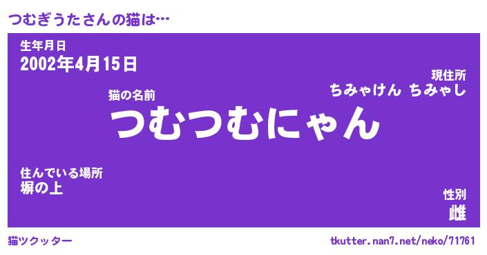 | ポケモン風あだ名 | 『ツムチュウ』『ツムギダネ』 |