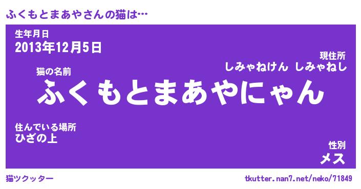 | 女子向けラノベタイトル風あだ名 | 『(仮)ふくもとまあやのやんごとなき事情』 |
