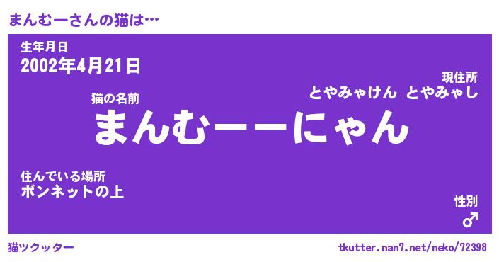 | 意味不明あだ名 | 『ペロリンまんむー』『永久保存まんむー』 |