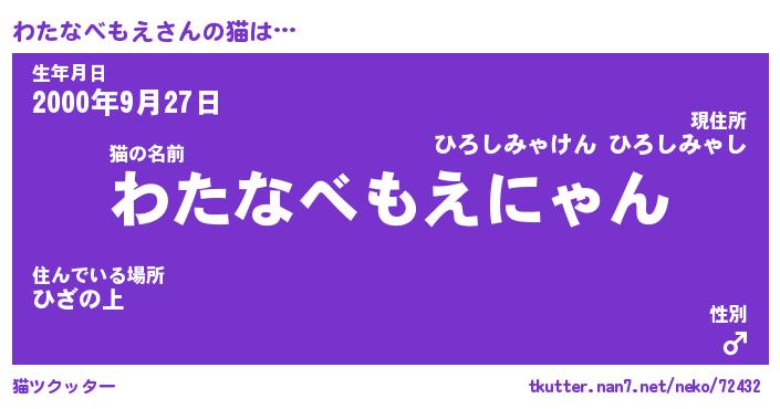 | ポケモン風あだ名 | 『ワタチュウ』『ワタナダネ』 |