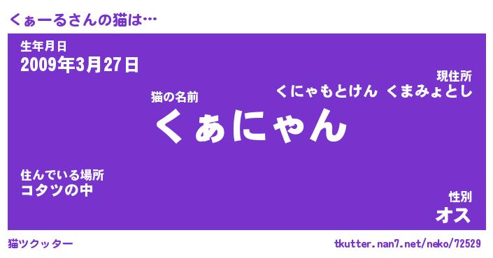 | ヘコむあだ名 | 『くぁにゅー』『なまこ酢』『くぁお』 |